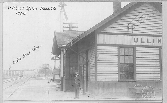 A single Illinois Central Railroad track was laid from Cairo to Carbondale during the period from 1851 to 1854. The ICRR company, who owned 100’ feet either side of the track, chose to place freight houses and depots about every five miles or so to make it convenient for farmers to reach in one day, ship their goods and still return home before sundown. The reasoning for the 100’ feet of property on each side was so when large trees on private land fell, they would not block the railroad. The location of Ullin was a good choice because of the Cache River, which the ICRR crossed and took on water from. The bottomlands around the Cache offered an abundant supply of timber.